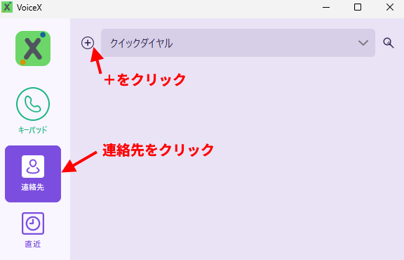 その後、画面左のメニューから「連絡先」を選択し、連絡先一覧画面を表示します。