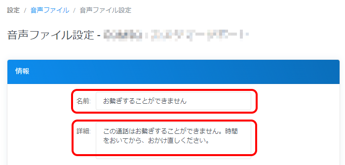 | 詳細 | わかりやすい任意の詳細を入力します ※ ここに入力された内容が自動的に読み上げられるわけではありません |