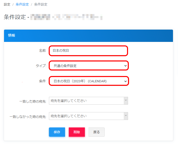 | 条件 | 「日本の祝日」を選択します |