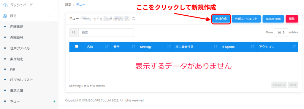 VoiceX管理画面で、キューを設定する方法について説明します。