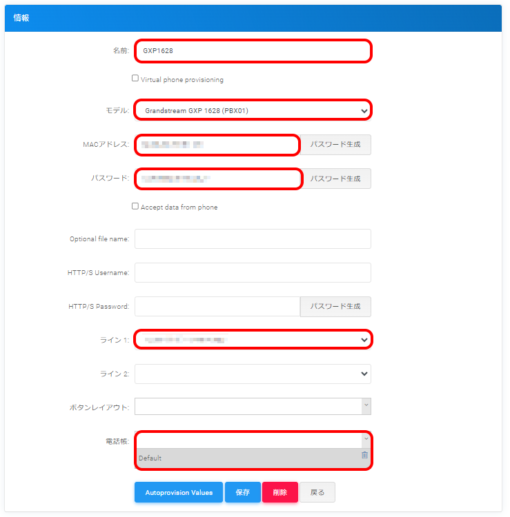 ここで説明している作成方法で選択した項目は、固定電話機「GXP1628」でのみ連携が可能です。各種連携方法については下記のリンク先を参照ください。