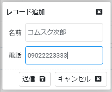 各電話帳の項目に応じた入力画面が開きますので、必要な情報を入力し、「送信」をクリックして登録します。