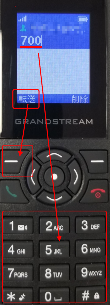 「ブラインド転送」を選択した後、ダイヤル画面が表示されます。
