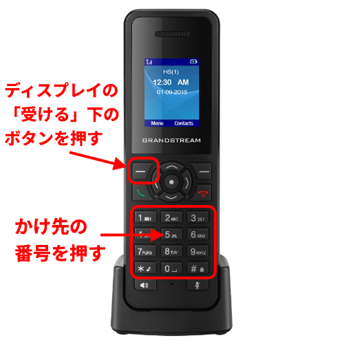 電話機「DP750/DP720」から電話をかける方法、電話機「DP750/DP720」にかかってきた電話を取る方法について説明します。