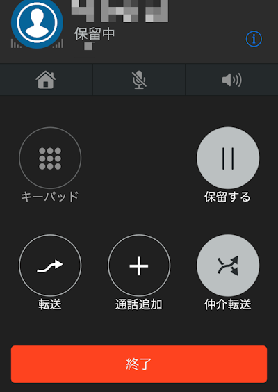 ・iOS / 自分から仲介転送先との通話を終了し、元の通話に戻る場合