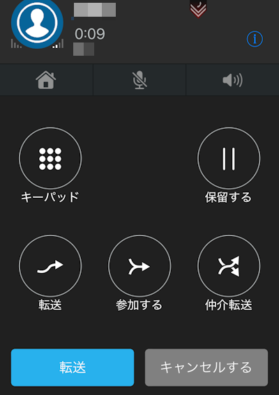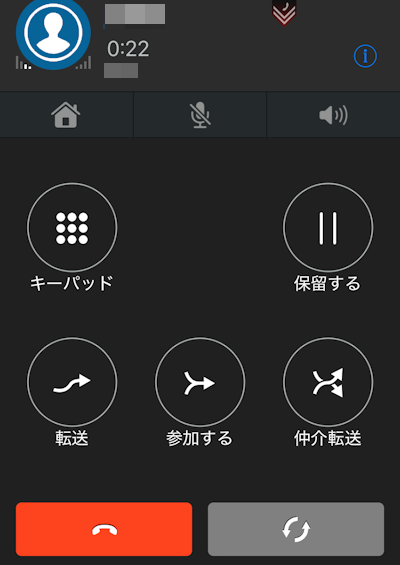 弊社から案内しているスマートフォン向けアプリ「VoiceX Mobile」で、仲介転送をキャンセルして元の通話に戻る方法について説明します。