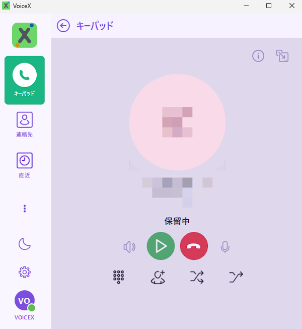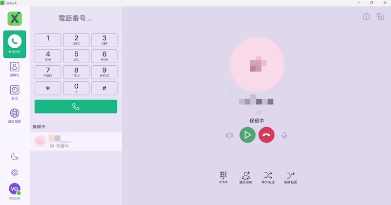 弊社から案内しているPC向けソフト「VoiceX Desktop」で、仲介転送をキャンセルして元の通話に戻る方法について説明します。