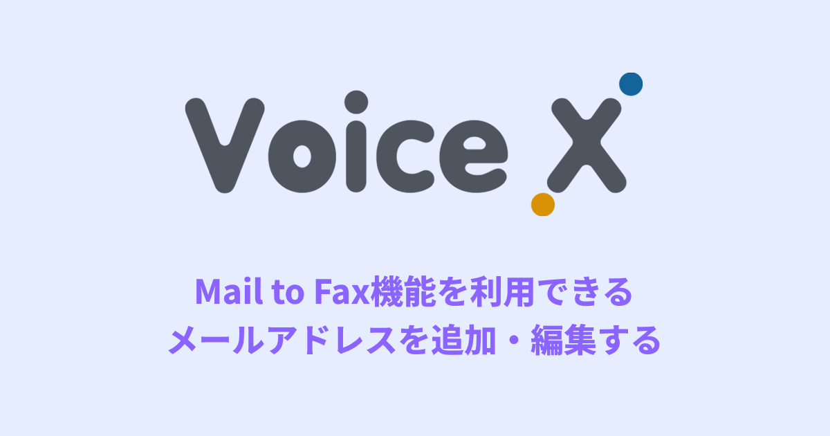 VoiceX管理画面で、Mail to Fax機能を利用できるメールアドレスを追加・編集する方法について説明します。